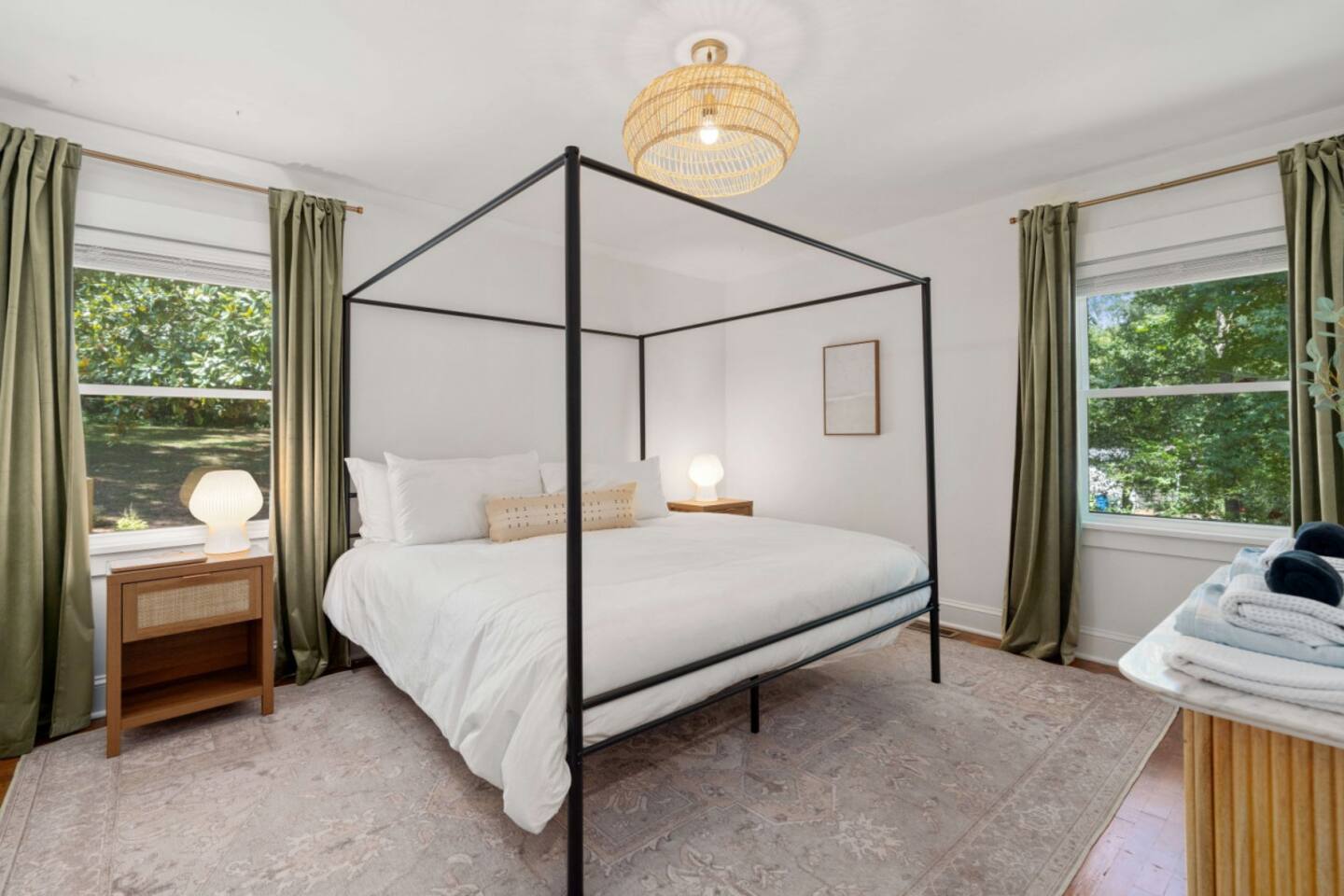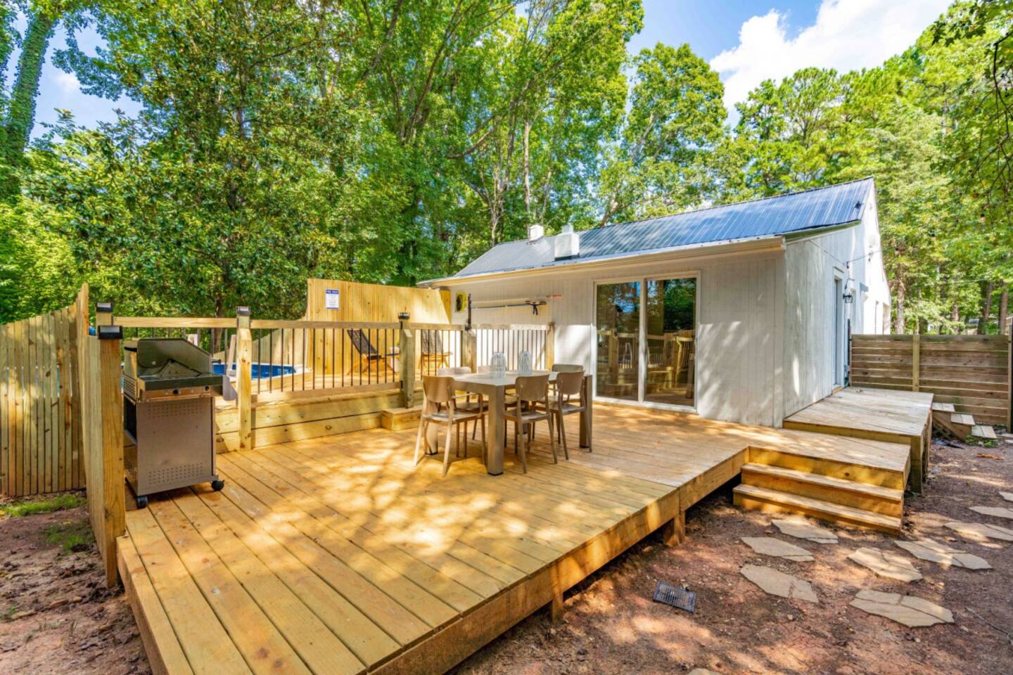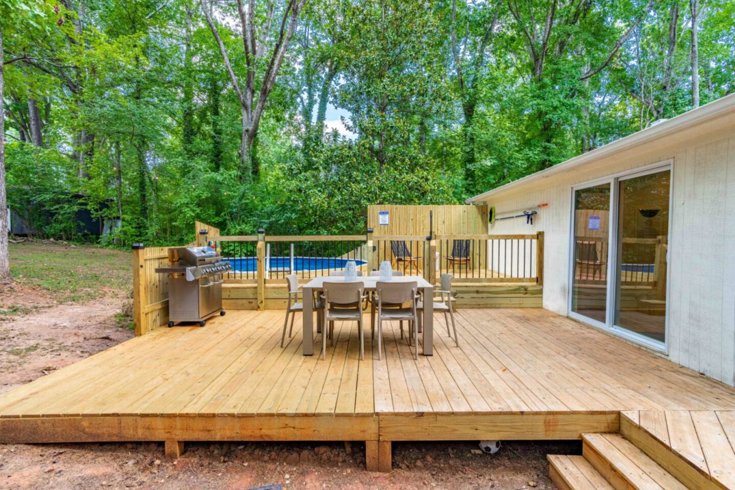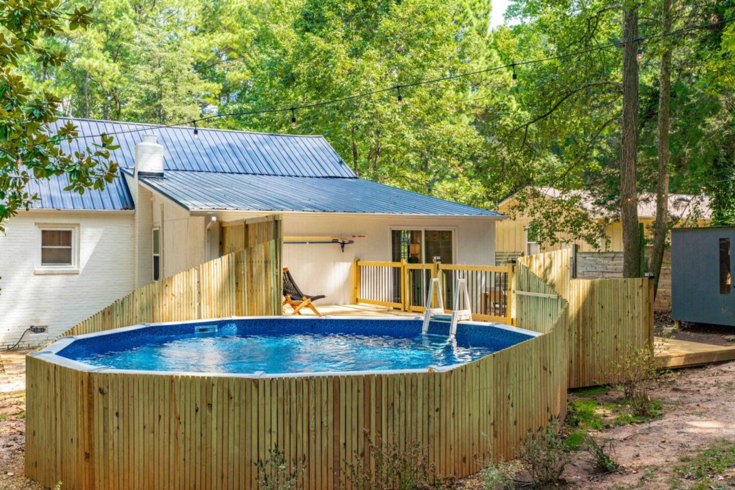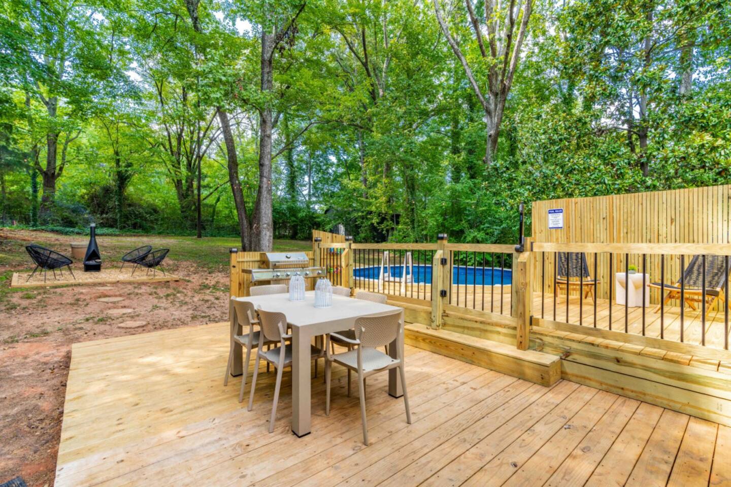 Welcome to our home, where luxury meets comfort. Carefully curated with top-notch furnishings, we've designed a space that exceeds your expectations. Each detail, from premium mattresses to the perfect lightbulbs, contributes to an exceptional stay. Accommodating large groups is effortless with 5 separate sleeping areas, ensuring both space and privacy. Location 6905 Baywood Dr Raleigh NC, 27613 10 minutes from RDU 12 minutes to downtown Raleigh Sleeps up to 12 Two inviting living rooms with large TVs, complemented by an additional TV in the kids' room, cater to diverse entertainment preferences. We prioritize your sleep experience, offering a range of firm, medium, and soft mattresses from Brooklyn Bedding. Our 100% percale cotton bed linens by Parachute Bedding are meticulously washed and sanitized between guests. Discover the ideal pillow with our assortment of hypoallergenic Casaluna pillows, providing personalized comfort. Simplify your travels with our thoughtfully provided consumables, including plant-based toiletries from Apotheke in every shower/bath. From spare razors and toothbrushes to makeup wipes, we've got you covered. In the kitchen, beyond the basics, you'll find all the tools for a delightful culinary experience—pots, pans, baking trays, and convenient appliances. Our well-stocked pantry includes olive oil and an array of spices, minimizing your grocery list. The pool is a highlight, offering a refreshing escape during Carolina summers and is open May through September. The pool deck invites communal gatherings, equipped with towels and kid-friendly toys. Your safety is paramount; a lockable gate and fence secure the pool area. Please enjoy responsibly, adhering to pool rules and exercising common sense. Your comfort is our priority. Make yourself at home and create lasting memories in this carefully crafted retreat.
