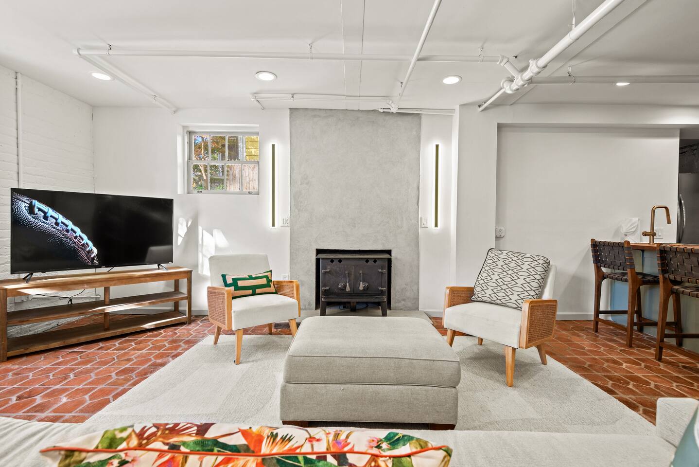 Location: - 3 Minutes to Downtown Raleigh - 4 Minutes to DPAC - Walking Distance to Duke Trinity Park - 11 Minutes to Cameron Stadium (Duke Basketball!) - 4 Minutes to Durham Performing Arts Center - 22 Minutes to RDU Airport Amenities: - Ping Pong - Foosball - Basketball - Several TV areas! - Wood burning stove - Pour over coffee bar Layout: Our home comes fully equipped with everything you need for an amazing stay. The Home has three levels. On the primary level, you will find the main living area, dining, and kitchen. There is also a kitchenette perfect for entertaining in the basement. There are also 3 king rooms on the main floor, two of which have their own en-suite full bathrooms. Upstairs you will find the master suite and master bathroom. There is also a large bedroom upstairs with 3 twin beds and an en-suite bathroom. Finally, you will find the secondary living area in the basement, perfect for lounging, watching TV, or enjoying the wood burning fireplace. Our home also has several outdoor patios and seating areas to enjoy the large oak trees overhanging the property. Events: We welcome all sorts of events from weddings, funeral receptions, birthdays, graduations, baby showers, and more! Our property can comfortably host up to 75 people. Please note, we do usually charge an event fee depending on the size and scope of the event, so please reach out to the host for more info. Pets: At the moment, we do allow small dogs under 25lbs and charge a fee of $100/dog. If you wish to bring a larger dog, that may be arranged, but you must get approval from the host as they may only be allowed to access the basement area since there are no hardwood floors to worry about in the basement.