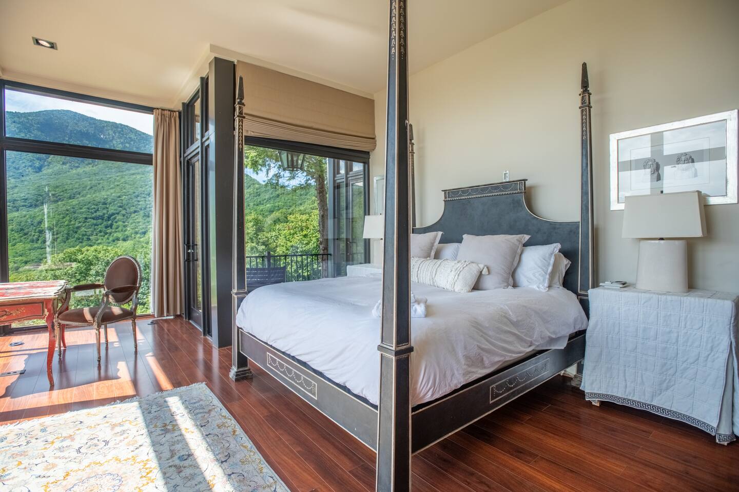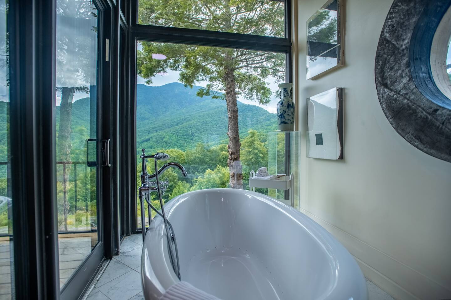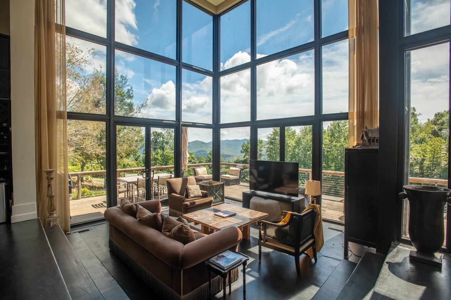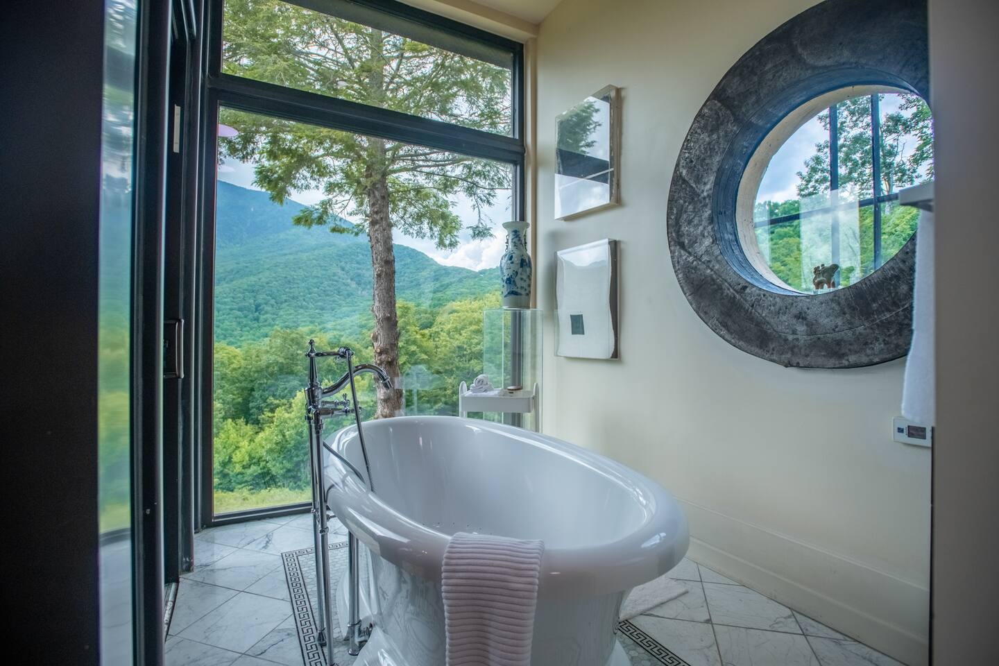 Please note, this listing if for the Mansion only. If you wish to book either the cottage or the entire estate, please use the links below for their appropriate listings. If you are looking to also host a larger event/wedding that involves having more than 11 people total on the property, please message the host for specific pricing. The Redstone Estate - airbnb.com/h/theredstoneestate The Redstone Cottage - airbnb.com/h/theredstonecottage Redstone is nothing short of a masterpiece, blending French and Italian classicism with luxury mountain living. Doric columns and stately double entry doors, composed of hand foraged iron filigree over glass grace the front entry way—guiding you to the beauty within. The interior is designed with classic furnishings from the owners private collection of fine antiques. And best of all, the views! 22ft ceilings and walls of glass on all sides take your breath away as you enjoy panoramic views of the National Forest from all sides. Property amenities & accommodations - Lofted library which overlooks kitchen and living area below. - Master bedroom has floor to ceiling windows of the North Carolina Mountains. Not to mention the glorious master suite bathroom featuring a luxurious jetted tub w/views! - Private Master Bedroom Balcony to enjoy your morning coffee - The bathrooms offer luxurious toiletries, new bath towels and robes. - Grounds featuring a water fall which flows into a nearby pond. - Massive wrap-around viewing deck with outdoor seating - Indoor and outdoor wood burning fireplaces - Grand Piano for your enjoyment - State of the art kitchen with high-end Thermador appliances - Large screen Smart TV - sign in to any service you like and enjoy! - Hiking trails that start right in our backyard going all the way up Mt Celo. You will see several waterfalls and vistas along the way. - Only 15 minutes to Burnsville local shops and eateries - 20 Minutes to Mount Mitchell for skiing, resorts, and hiking - 10 Minutes to the Blue ridge Parkway - 45 minutes to downtown Asheville.