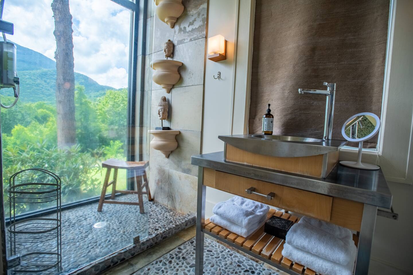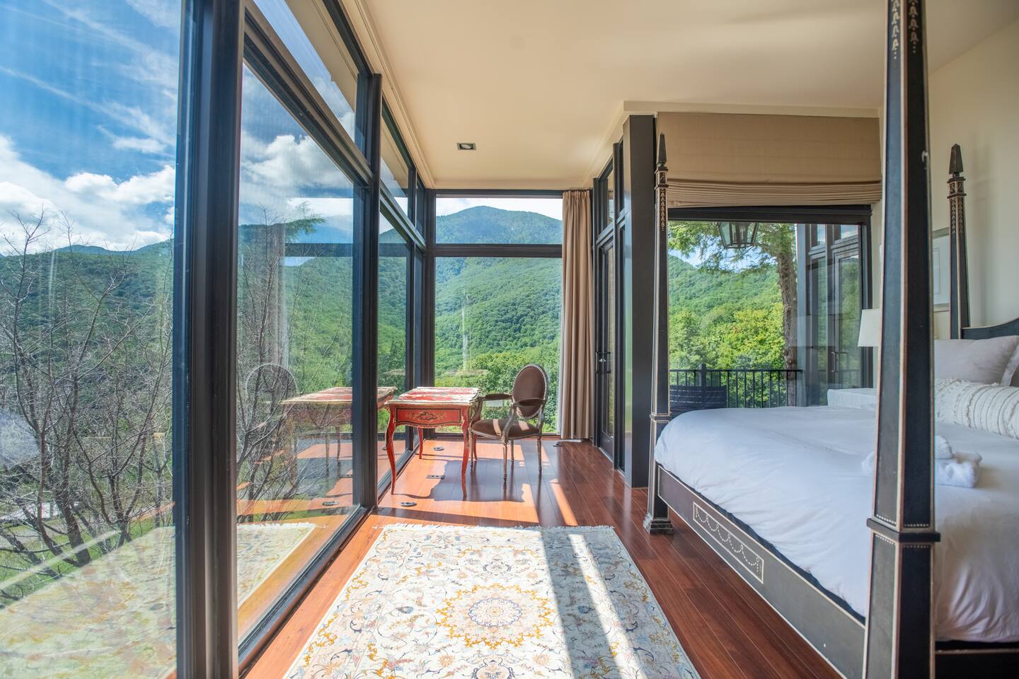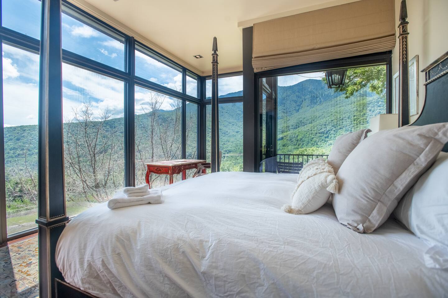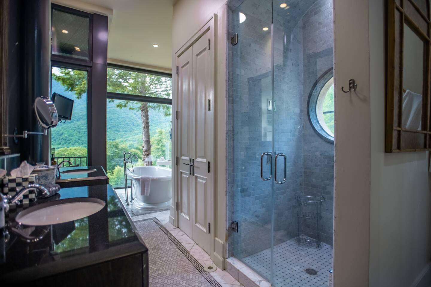 Please note, this listing if for the Mansion only. If you wish to book either the cottage or the entire estate, please use the links below for their appropriate listings. If you are looking to also host a larger event/wedding that involves having more than 11 people total on the property, please message the host for specific pricing. The Redstone Estate - airbnb.com/h/theredstoneestate The Redstone Cottage - airbnb.com/h/theredstonecottage Redstone is nothing short of a masterpiece, blending French and Italian classicism with luxury mountain living. Doric columns and stately double entry doors, composed of hand foraged iron filigree over glass grace the front entry way—guiding you to the beauty within. The interior is designed with classic furnishings from the owners private collection of fine antiques. And best of all, the views! 22ft ceilings and walls of glass on all sides take your breath away as you enjoy panoramic views of the National Forest from all sides. Property amenities & accommodations - Lofted library which overlooks kitchen and living area below. - Master bedroom has floor to ceiling windows of the North Carolina Mountains. Not to mention the glorious master suite bathroom featuring a luxurious jetted tub w/views! - Private Master Bedroom Balcony to enjoy your morning coffee - The bathrooms offer luxurious toiletries, new bath towels and robes. - Grounds featuring a water fall which flows into a nearby pond. - Massive wrap-around viewing deck with outdoor seating - Indoor and outdoor wood burning fireplaces - Grand Piano for your enjoyment - State of the art kitchen with high-end Thermador appliances - Large screen Smart TV - sign in to any service you like and enjoy! - Hiking trails that start right in our backyard going all the way up Mt Celo. You will see several waterfalls and vistas along the way. - Only 15 minutes to Burnsville local shops and eateries - 20 Minutes to Mount Mitchell for skiing, resorts, and hiking - 10 Minutes to the Blue ridge Parkway - 45 minutes to downtown Asheville.